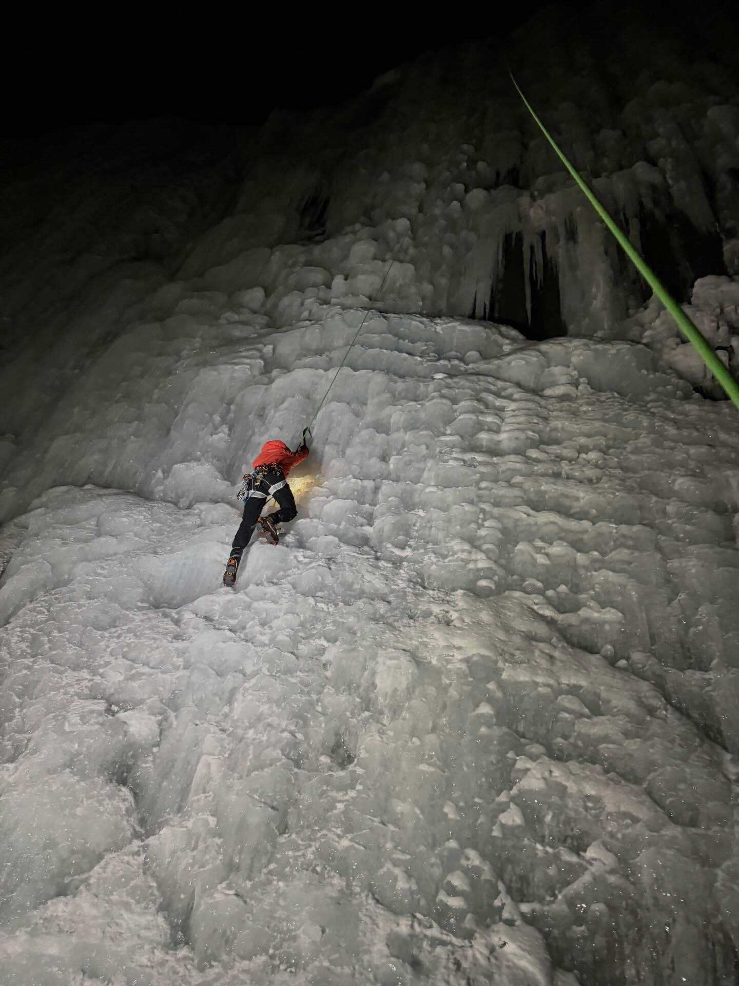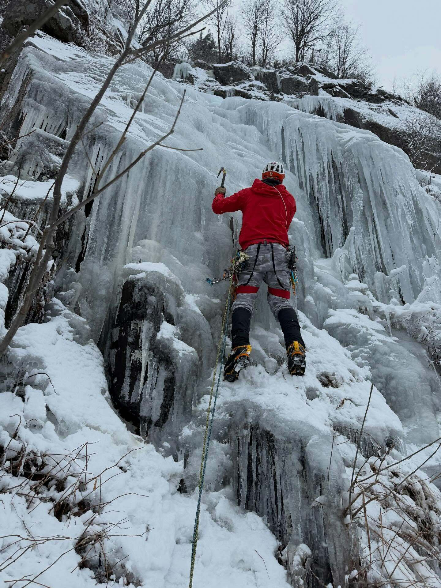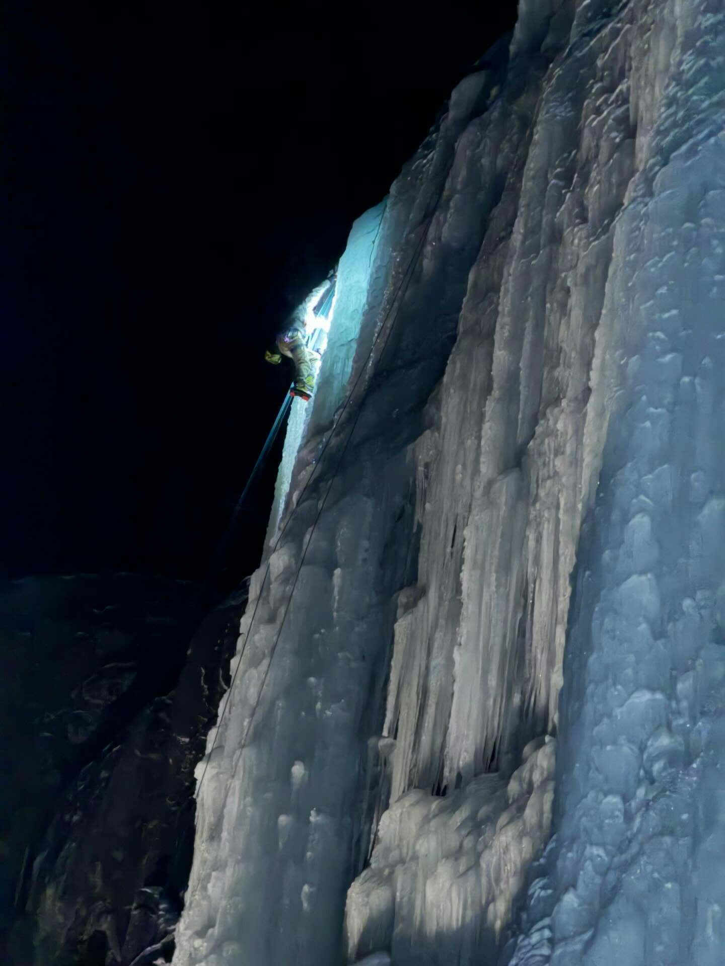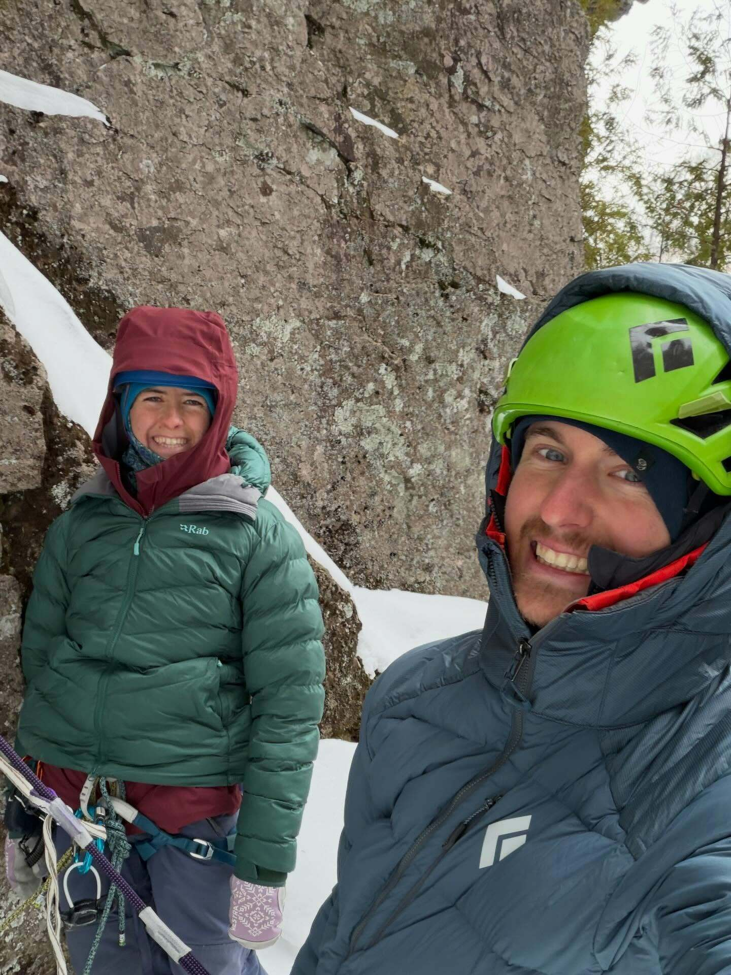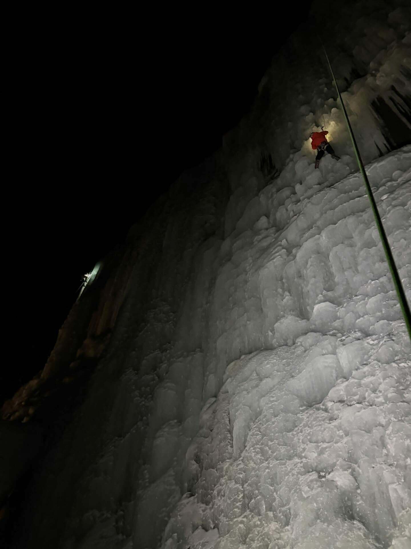 Another stellar day climbing frozen water with clients and friends. This time in the sun for the first day this season! ☀️ Pitchoff Left was chandeliered but pretty good, getting mushy by midafternoon. Hot Shot and Ice Slot in the Canyon were wet and wonderful. Today marked 50 pitches this season for me. 🙌
