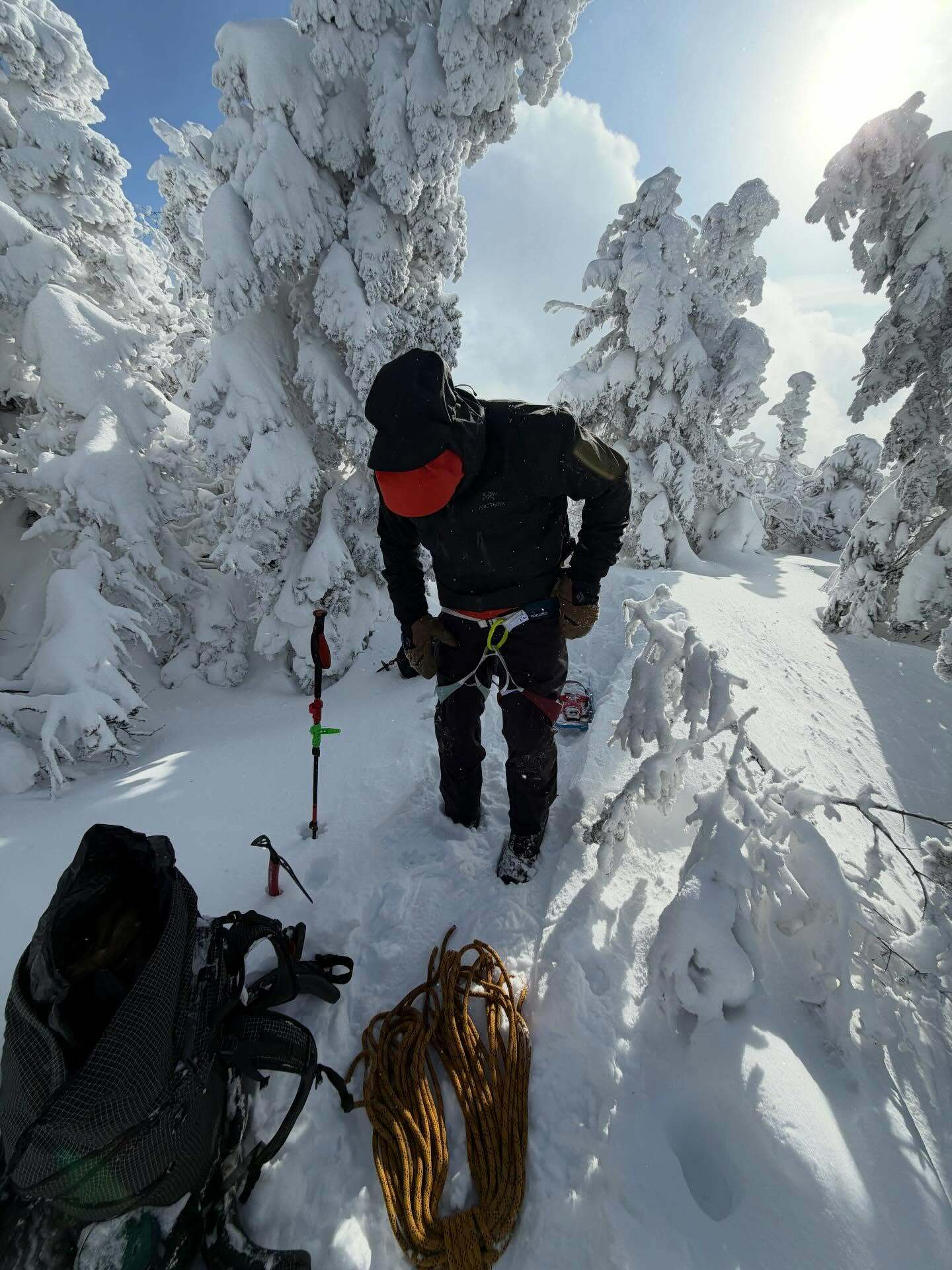 A wild day up in the High Peaks! Todd nabbed his 38th and 39th winter summits on Gothics and Saddleback. You really can’t overstate how different those two peaks are. Gothics was steep, exposed, and mega windy — almost blew out packs off the mountain! We opted for a roped descent through the steepest and iciest bit. Saddleback was a cakewalk with consistent slope and powdery snow by comparison! But Todd did awesome. Every ascent is unique!