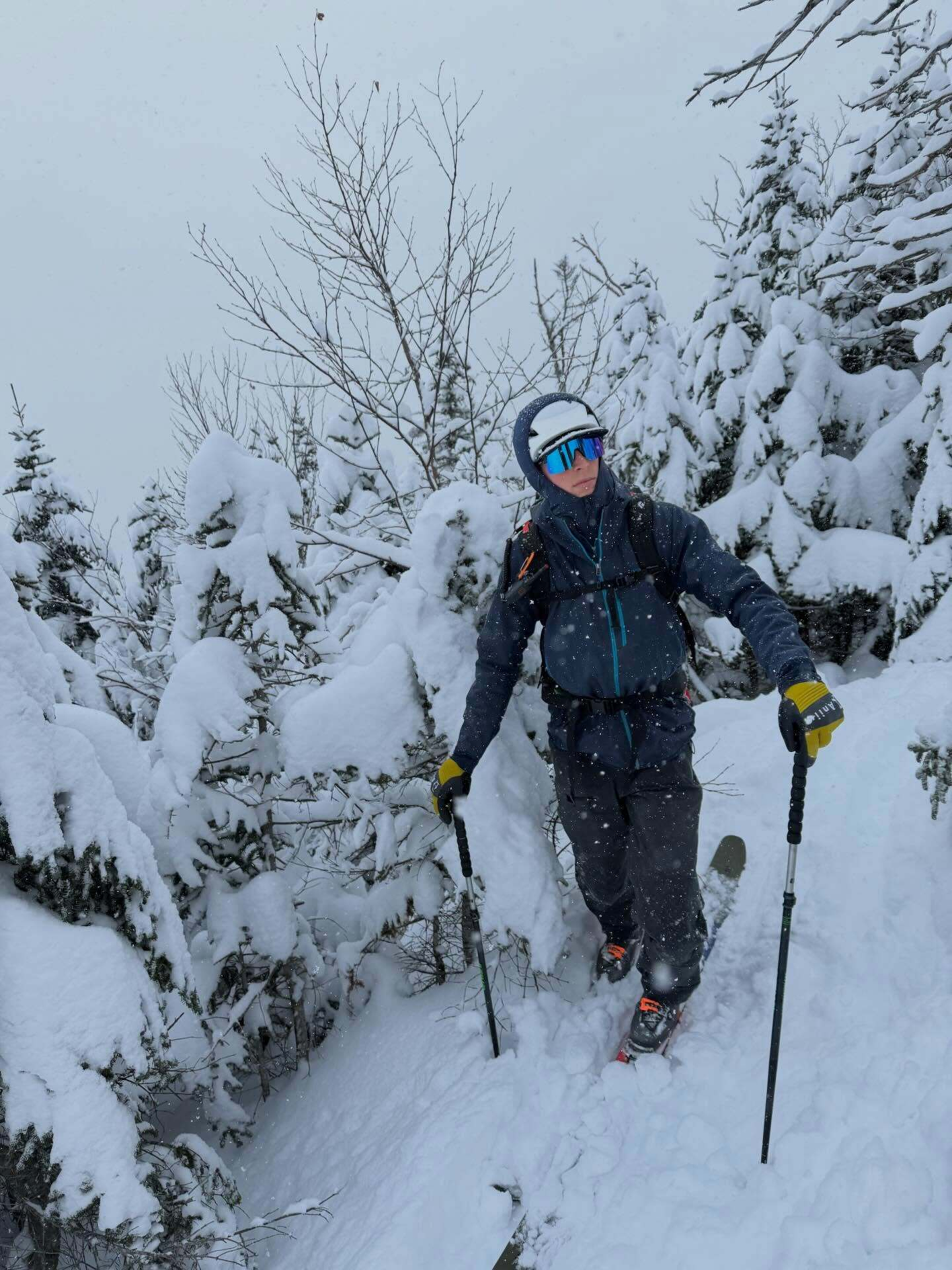 We made our way up Wright Peak from the Loj via the Old Marcy Dam trail and Wright Ski Trail. The rocky hiking trail and bottom section of the ski trail made for some exciting dodge, duck, dip, dive and dodging. But mega fun up top! Great temps too — way nicer on Wright than yesterday! 😁