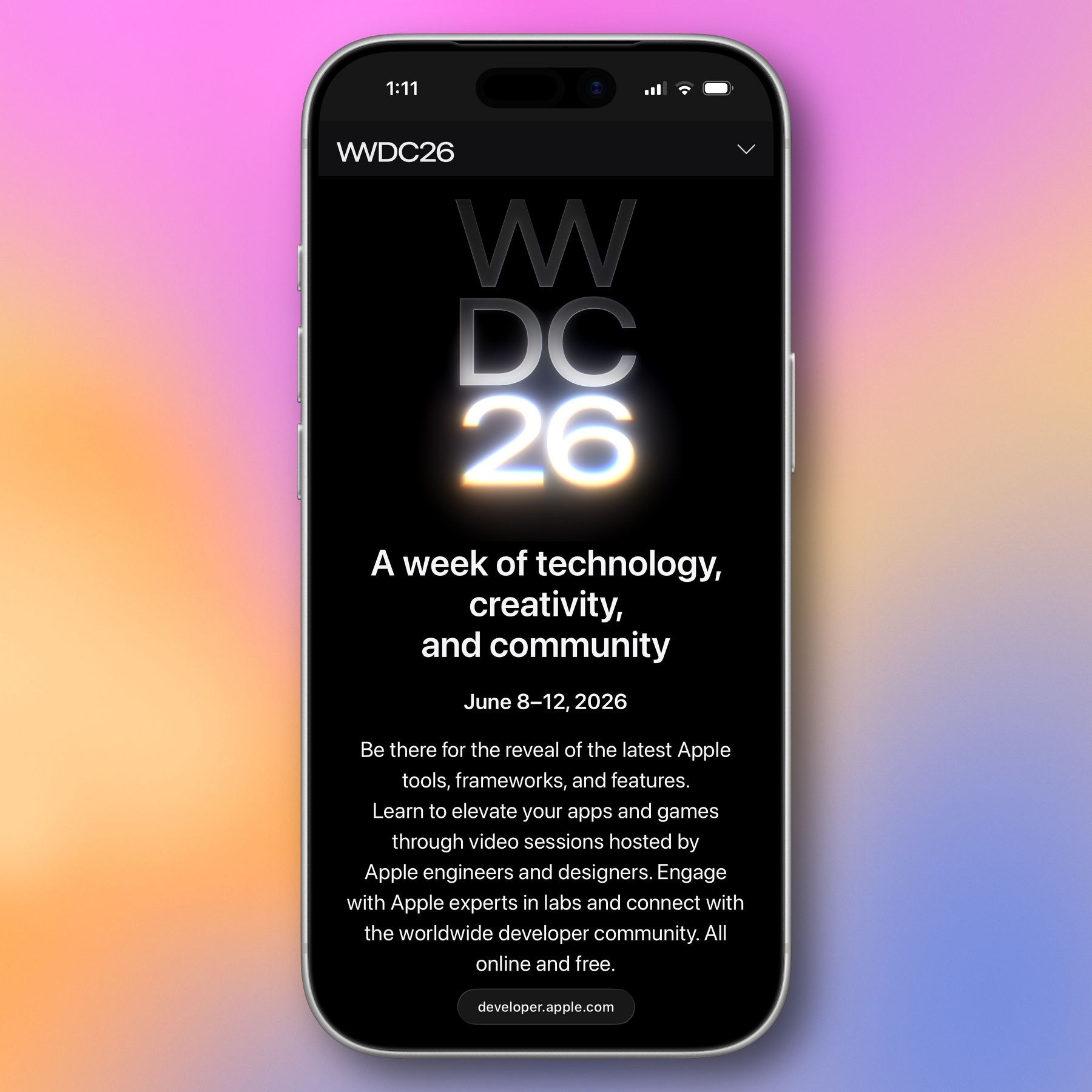 This year’s WWDC is June 8-12. Usual online-only* format.