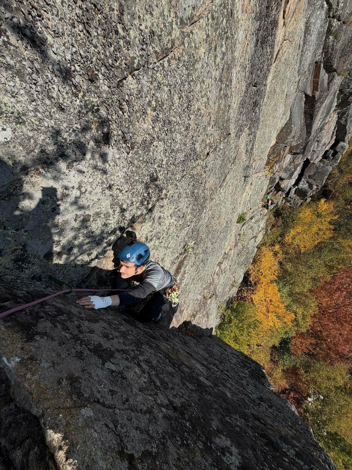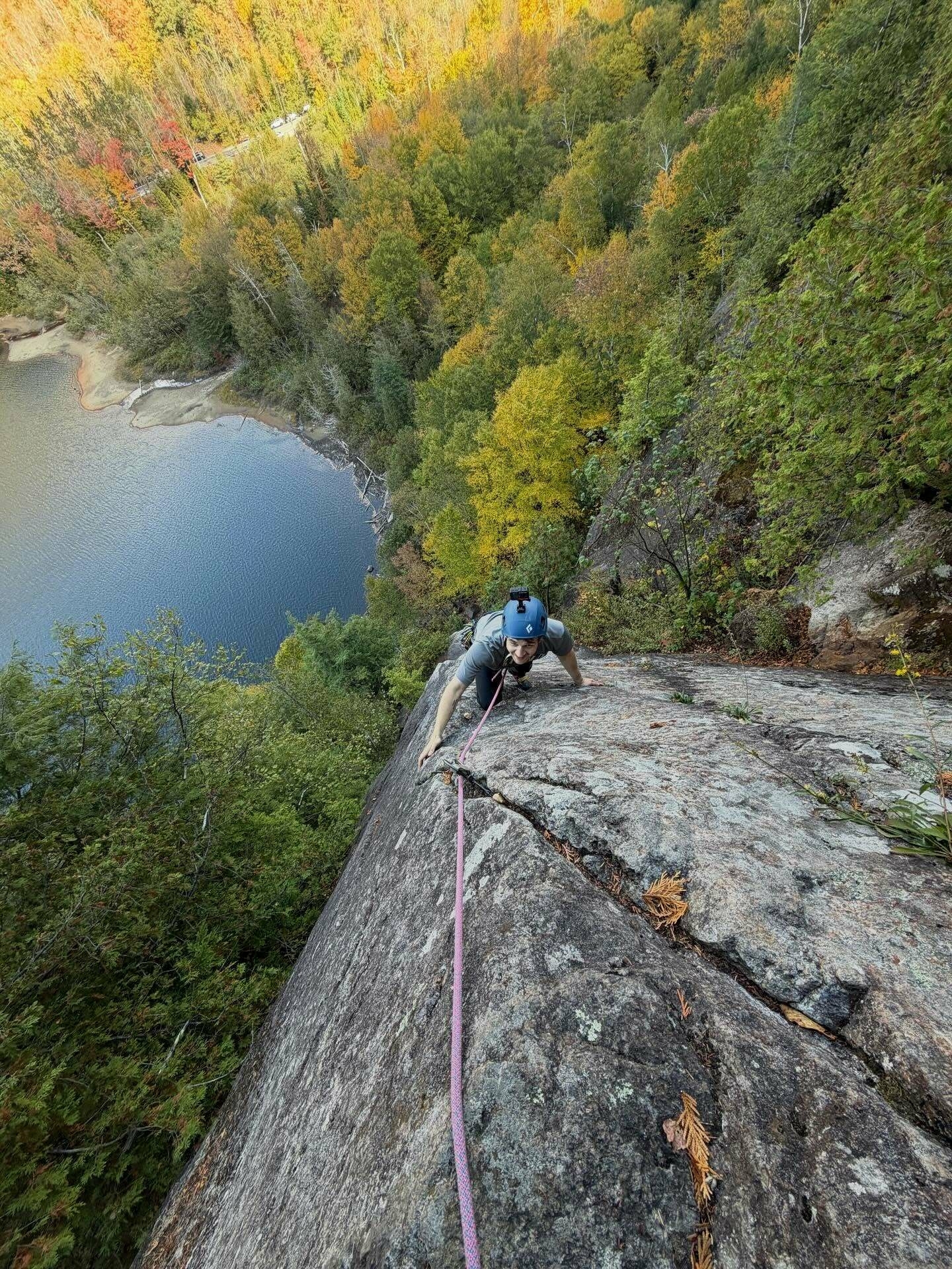 I’ve been climbing with Alex for a while now, and it’s infectious the enthusiasm he’s got for scaling rocks! We enjoyed a perfect fall day and hit up some classic 5.7 routes on his tick list: Pete’s Farewell on Pitchoff, Tilman’s Arete at Chapel Pond, and Rum Doodle at The Aquarium.
