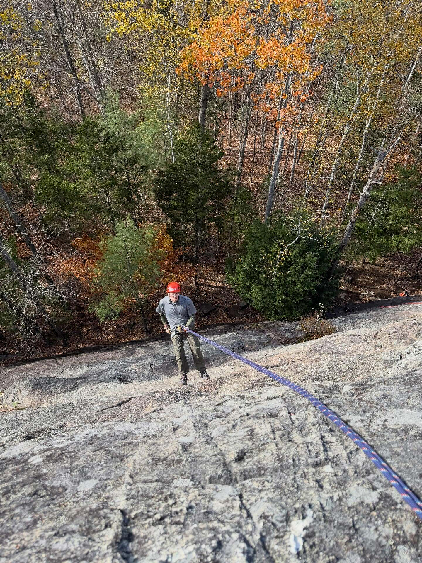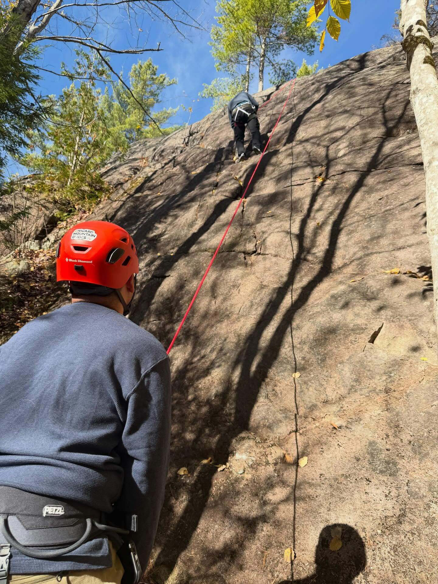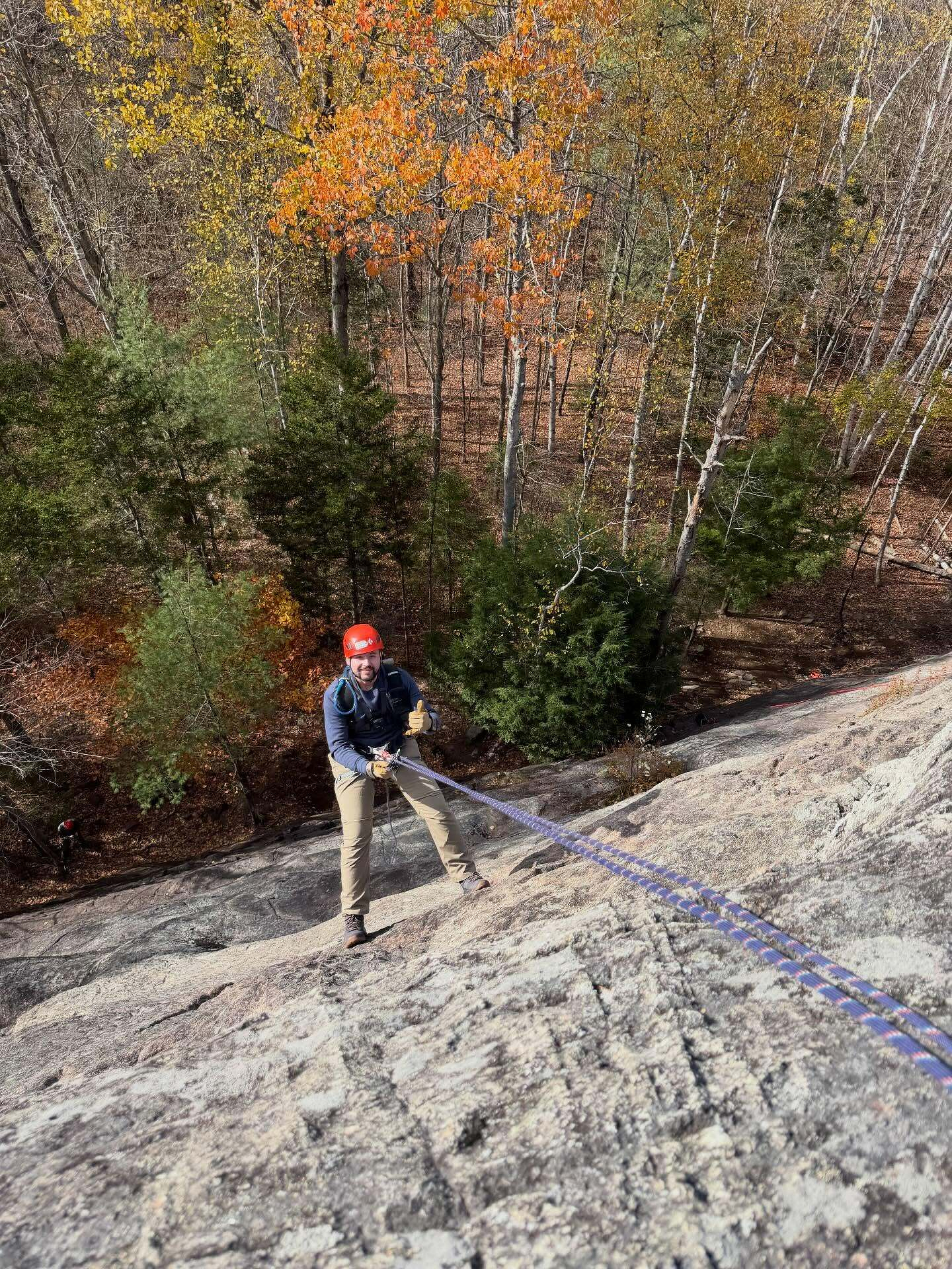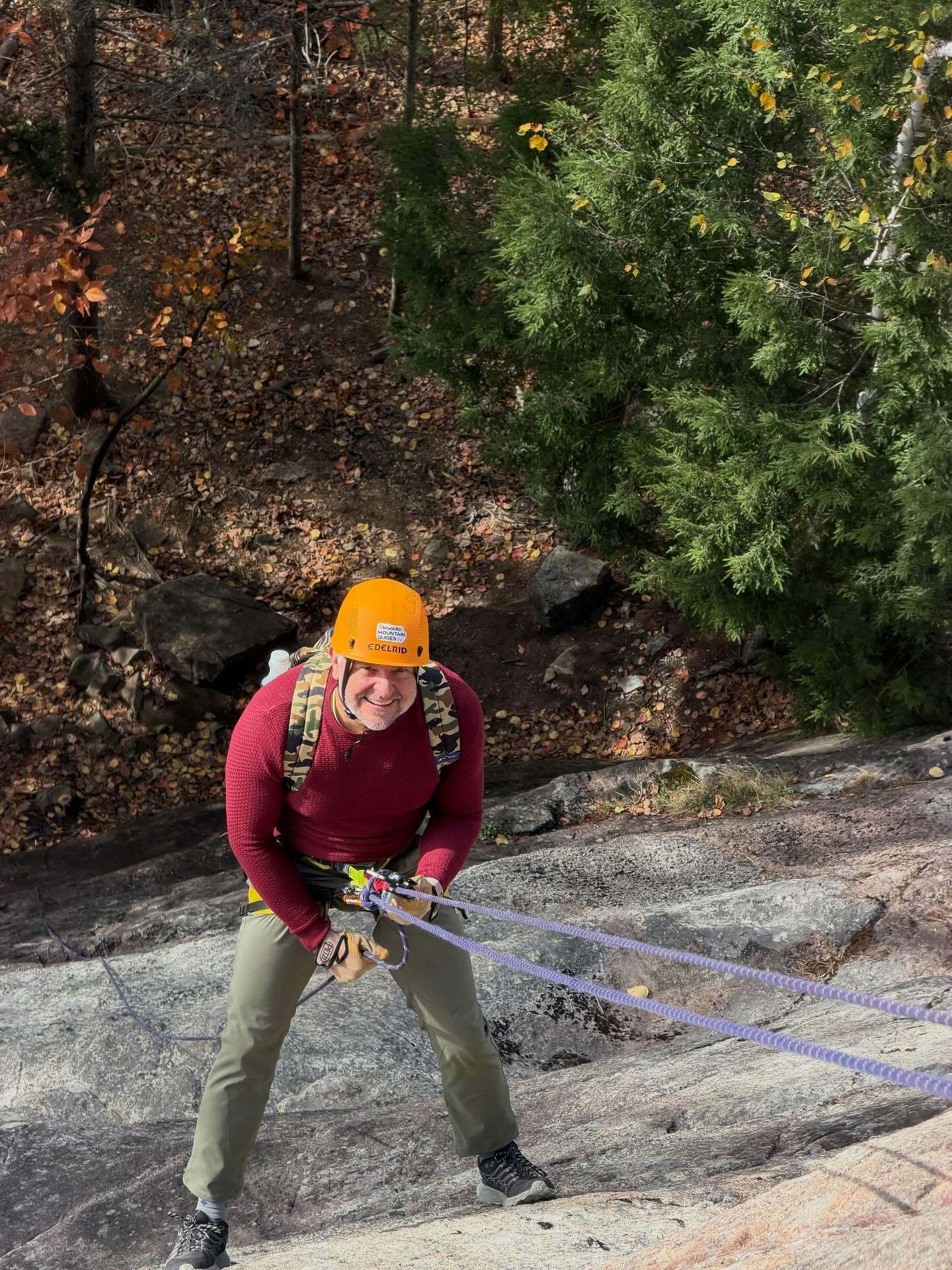 The boys are back in town! Brandon, Kevin, Shane, and Brian all came upstate for a weekend of camaraderie and adventure — and they sure got it! We spent yesterday rock climbing and doing a rappelling clinic at King Philip Spring Wall, and then this evening the main event: a stunning sunset rappel down Roaring Brook Falls. It was so great to hang out with these guys and swap stories. Their firefighter training gave them all a great base for learning technical systems, so moving into the rock world was a logical step. Can’t wait to have them back!