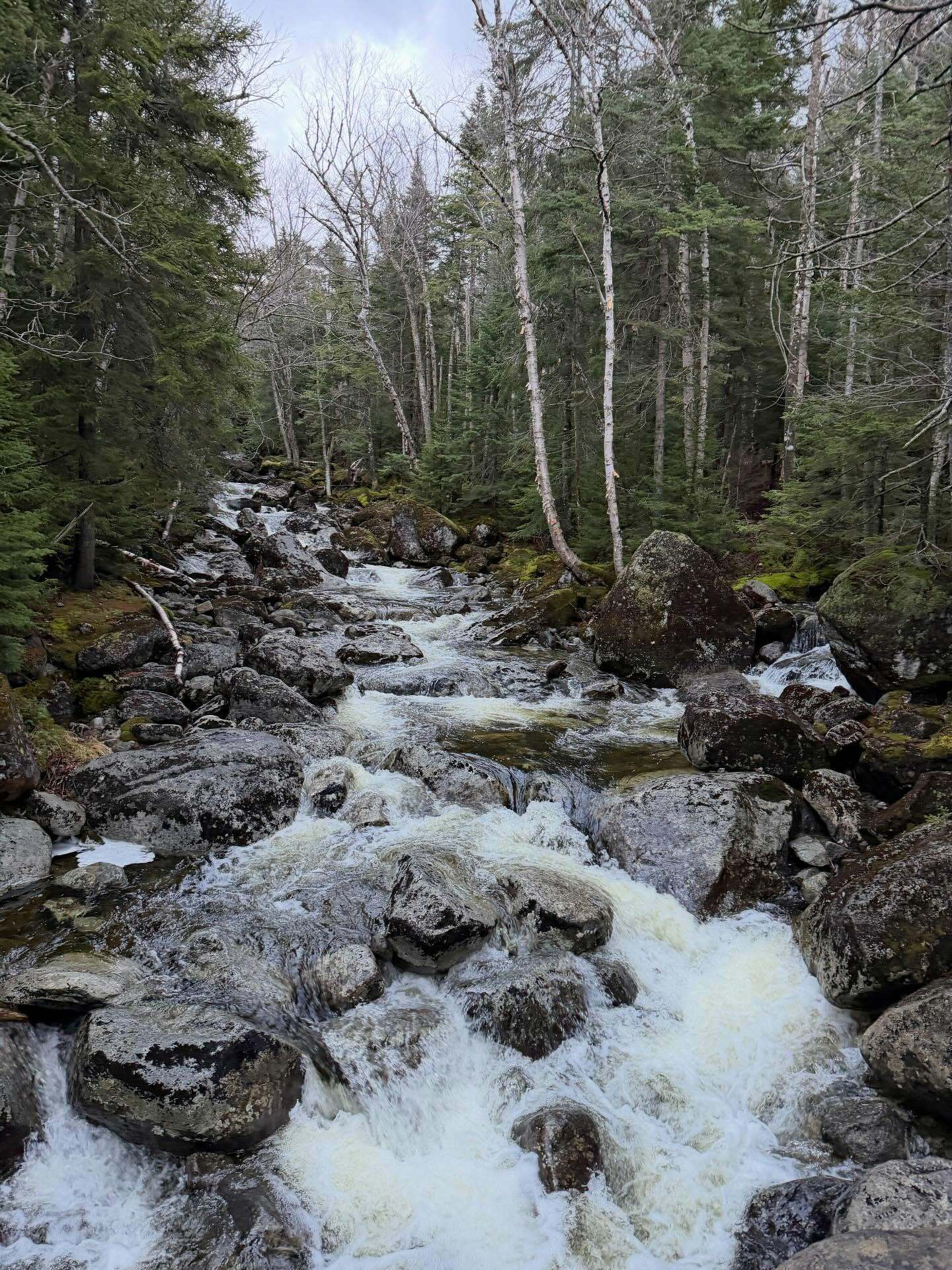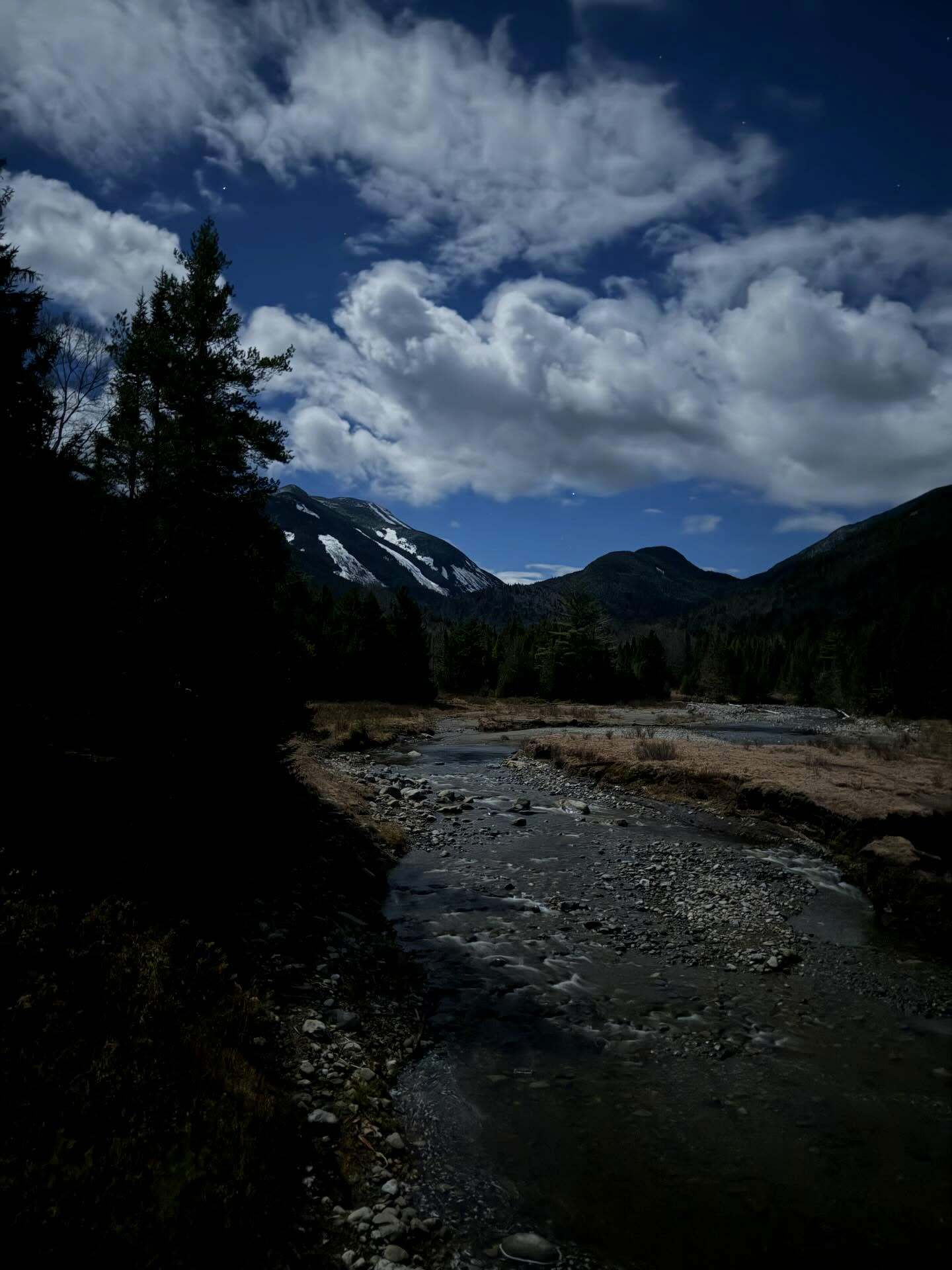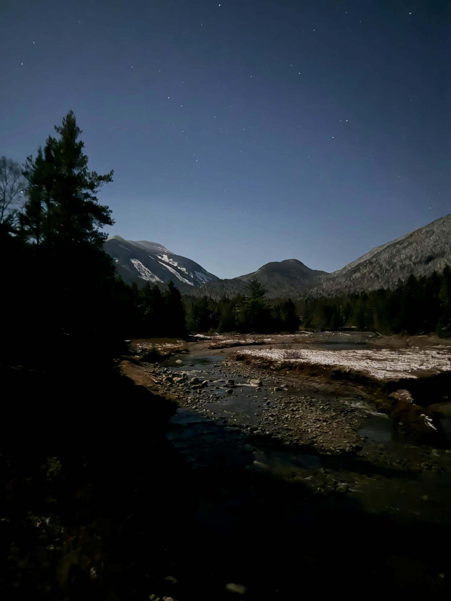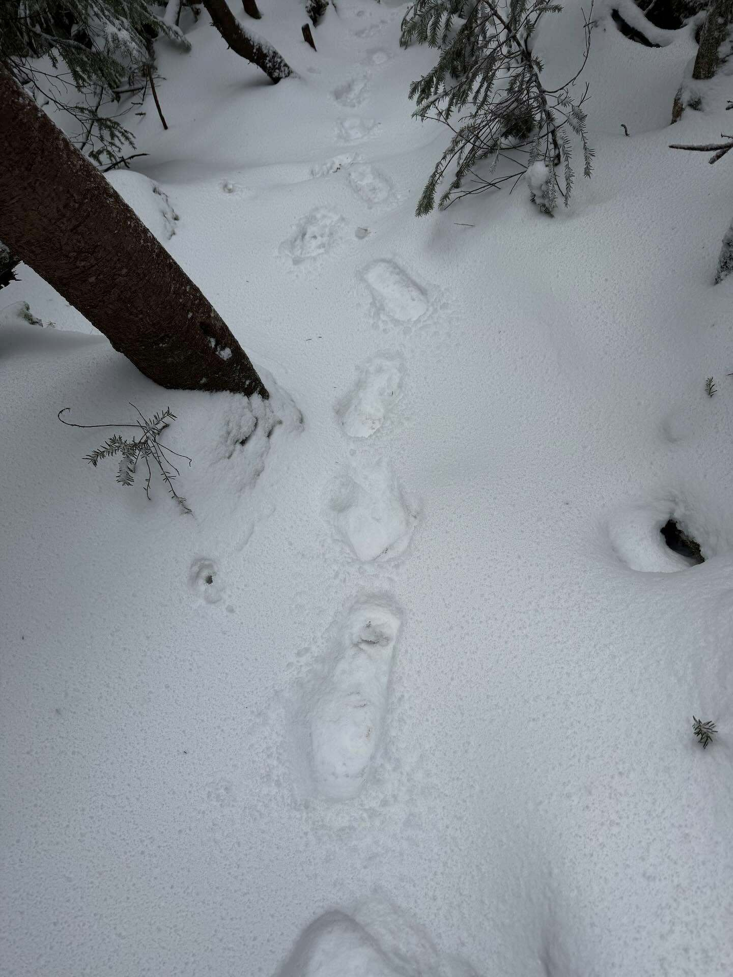 Cliff & Redfield packed a punch for Tom’s 43rd and 44th high peaks. More snow AND more water made conditions quite challenging in both the low and high elevations. Getting to the Uphill Lean-to from the Loj via Lake Arnold and the floating logs took about 5.5 hours, then up and down Redfield (nice views, and snow 6-inches deep!) in about 3.5 hours, and Cliff (the cliffs weren’t too icy yet) in about 2.5 hours. About 6 hours for the return hike in headlamps (incredible full moon!) put us at around 17.5 hours of constant movement — our longest yet. We head into the mountains to test ourselves, and Tom continues to impress!