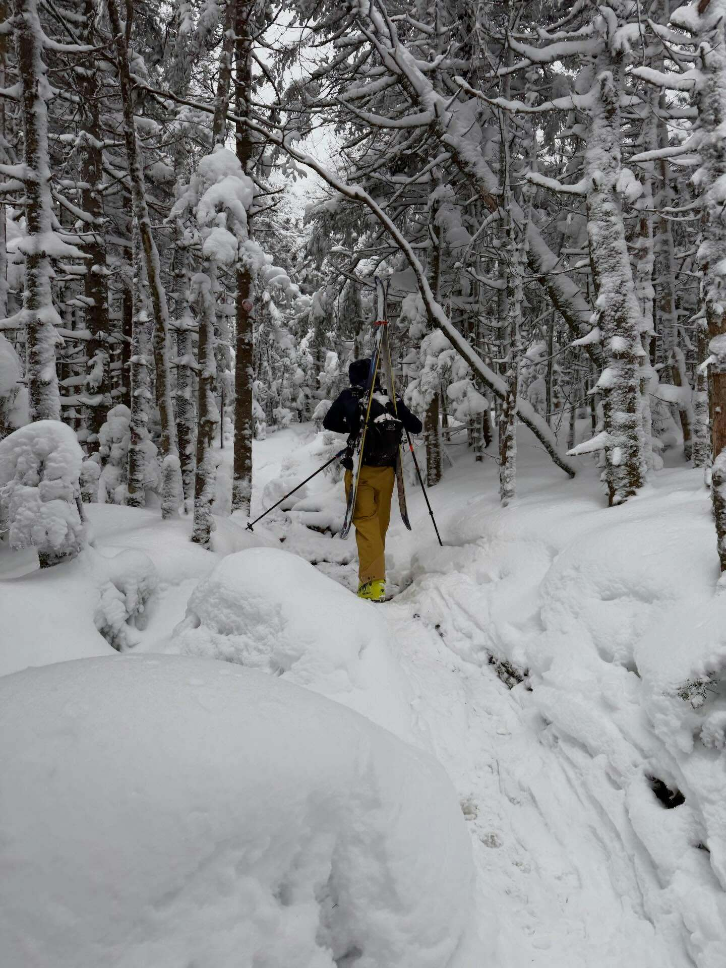 Fun in the… snow! ❄️ Thanks to @bbrianandersonn for joining me on this scouting mission. Base could use some more work (lots of rocks under there!) but the snow is powdery and DEEP up top! Gonna be a great winter for backcountry skiing in the ADK! ⛷️
