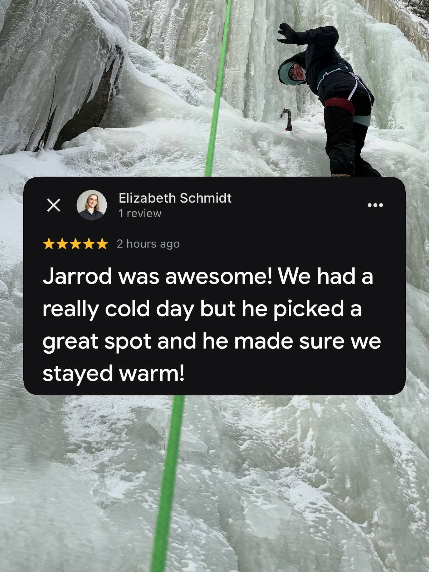 Part of the fun is making the most of what Mother Nature hands us. If that’s -15°F wind chill, we bundle up, fill the thermos with hot chocolate, and keep climbing! Thanks, Liz and Nate, for bringing extra warmth with your smiles and stoke today!