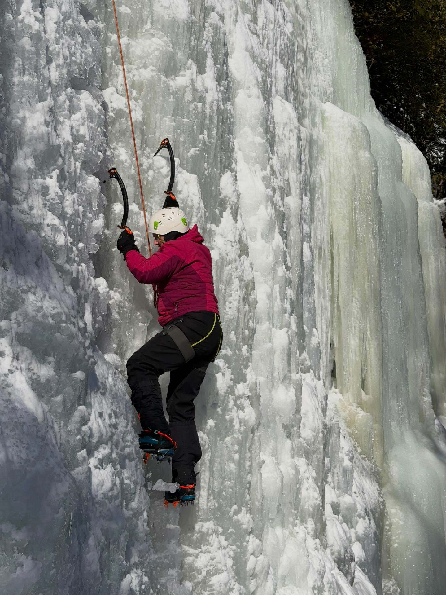 Another stellar day climbing frozen water with clients and friends. This time in the sun for the first day this season! ☀️ Pitchoff Left was chandeliered but pretty good, getting mushy by midafternoon. Hot Shot and Ice Slot in the Canyon were wet and wonderful. Today marked 50 pitches this season for me. 🙌
