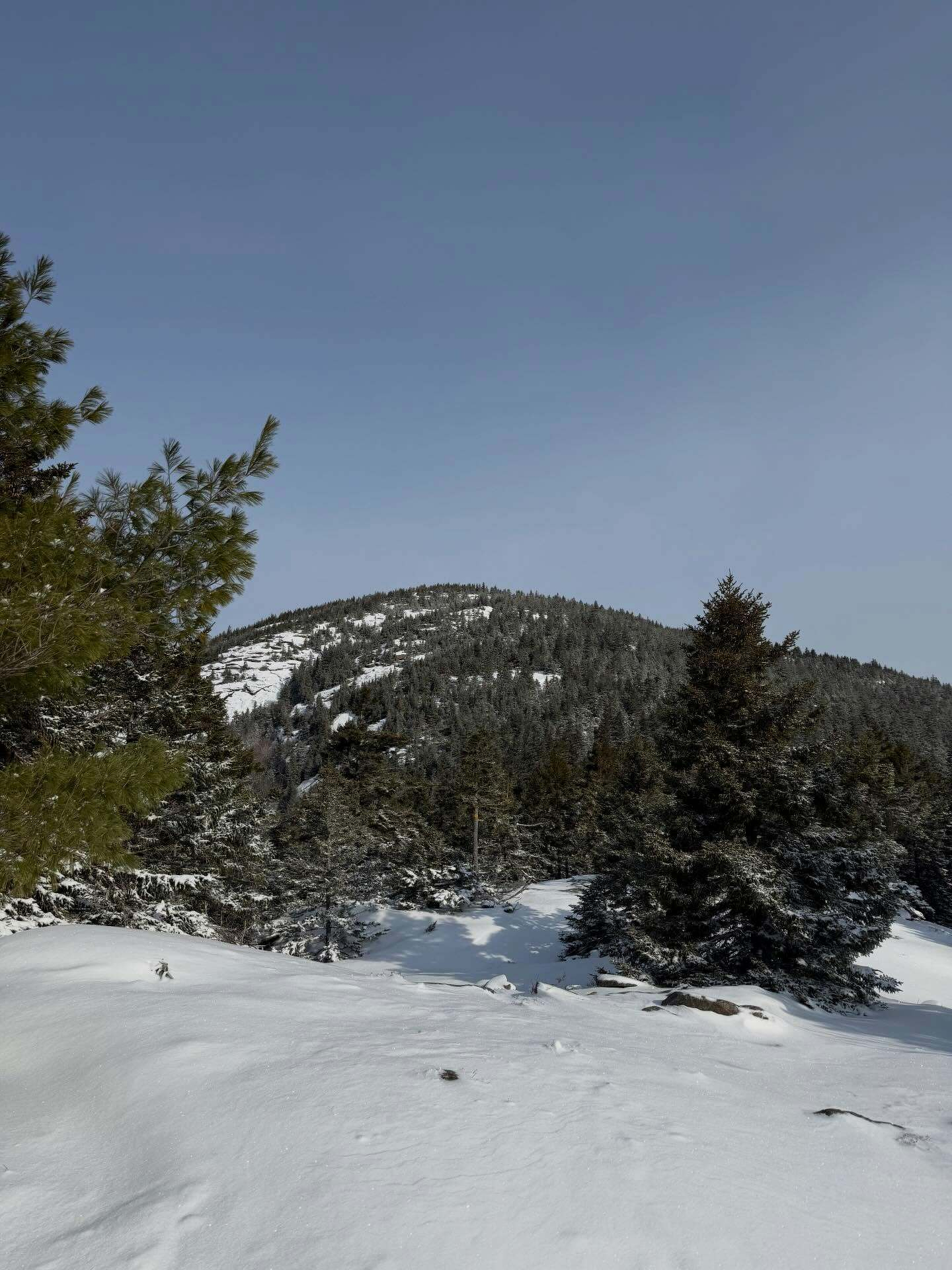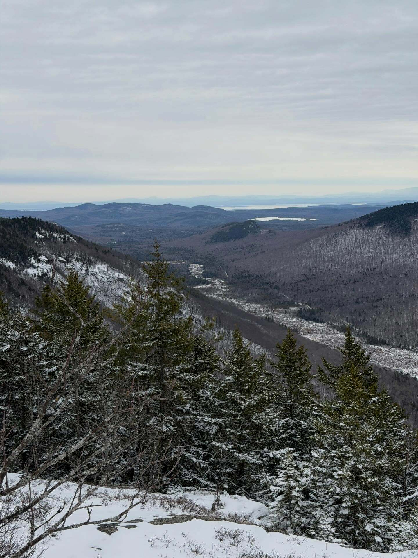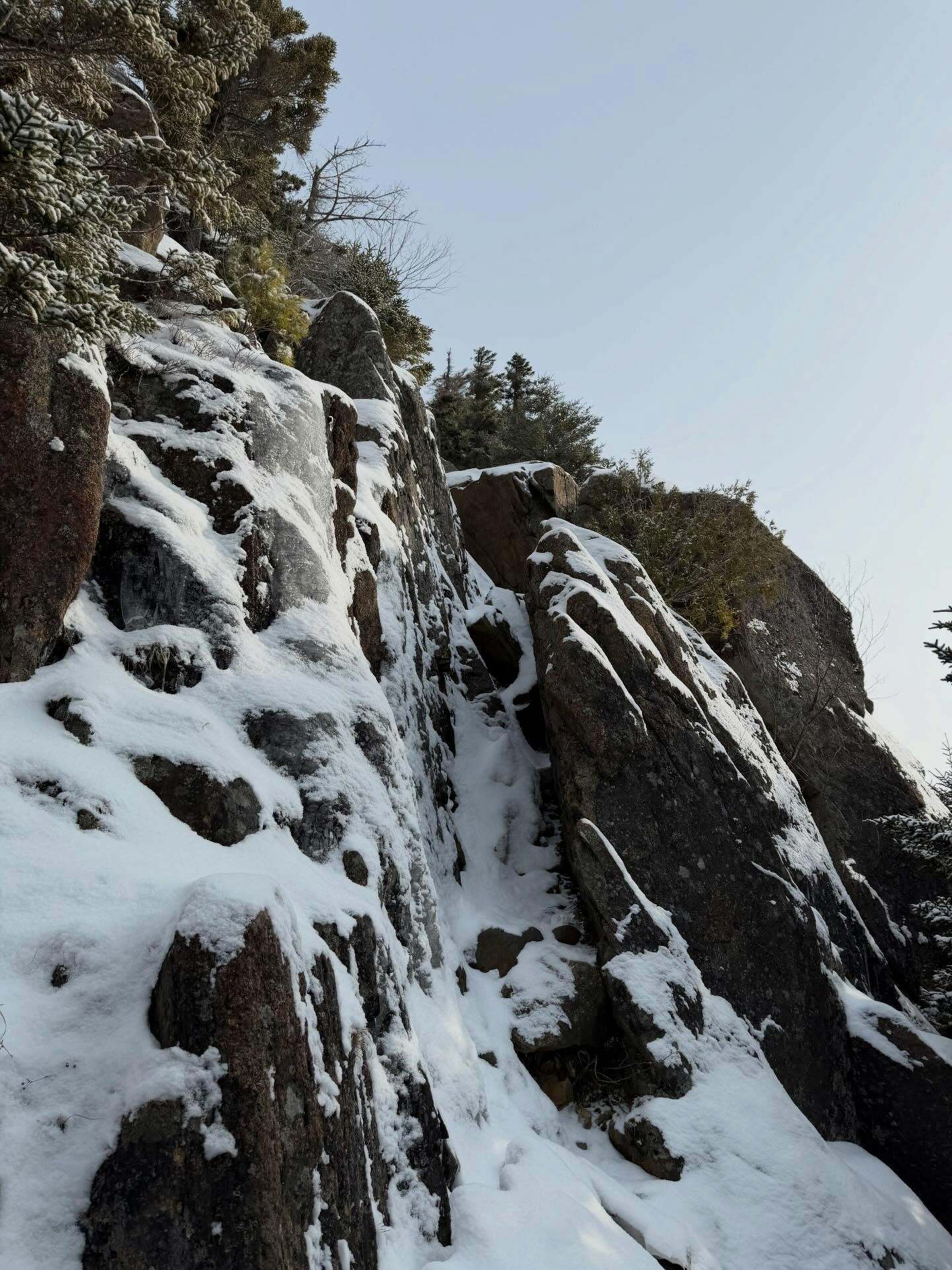 She did it! Three years in the making and after thwarted winter attempts, Karen summited Catamount Mountain to complete her winter round of the @lakeplacid9er challenge! 🥳 🏔️ Fresh snow helped a ton to cover the glare ice underneath, but our spikes were definitely needed from bottom to top. We lucked out with great views, sun, and no wind! The clouds held off until we were descending. Well done, Karen, your joyful outlook made the day great!