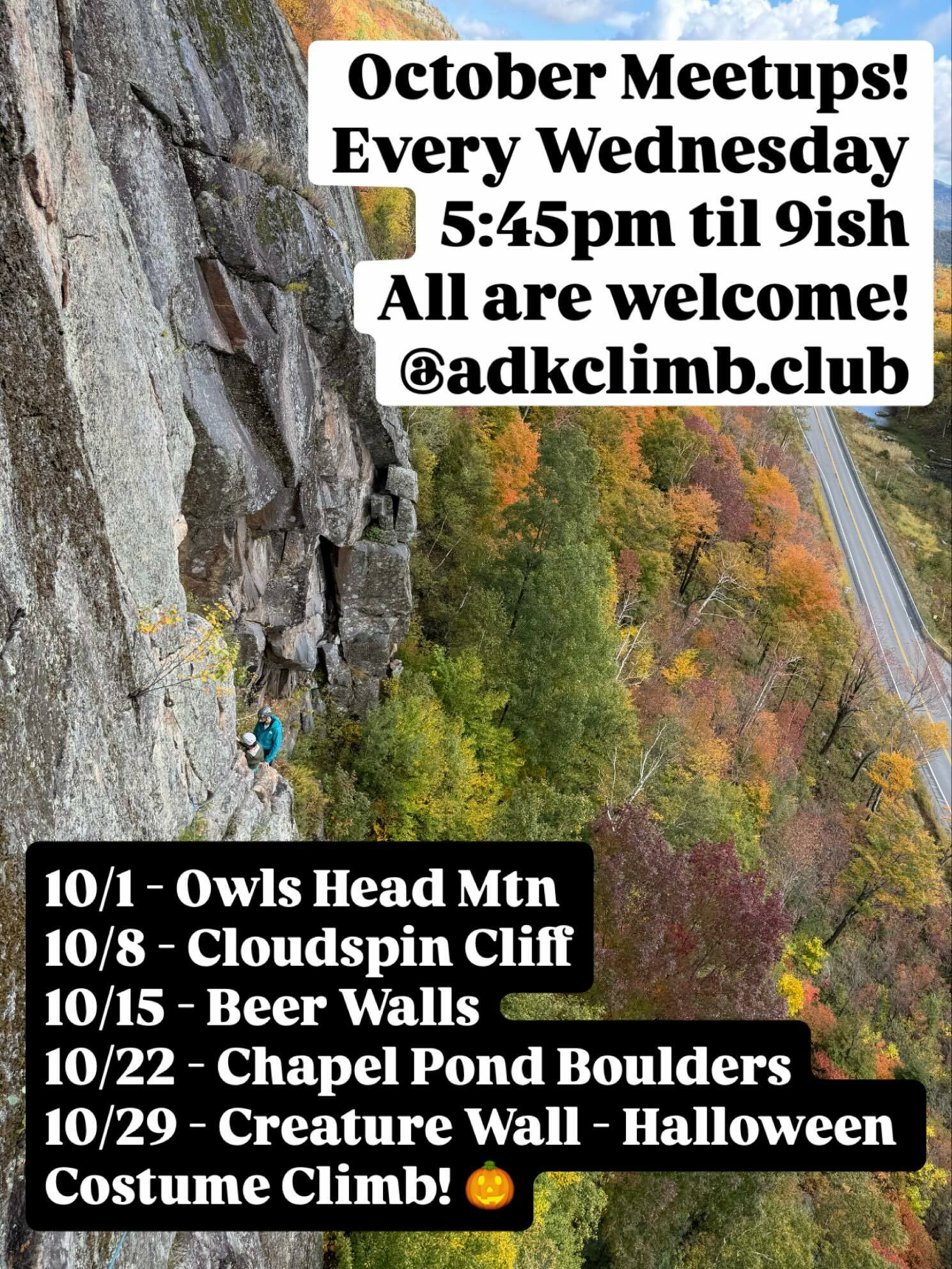 Climbing and community, that’s what the club is for! Come get in some pitches at classic local crags, and make new friends (and climbing partners!) at the same time. Rental gear provided for free by our sponsor @onwardguides, so bring your friends, even if they’re new to climbing. And don’t forget your headlamp! 🔦