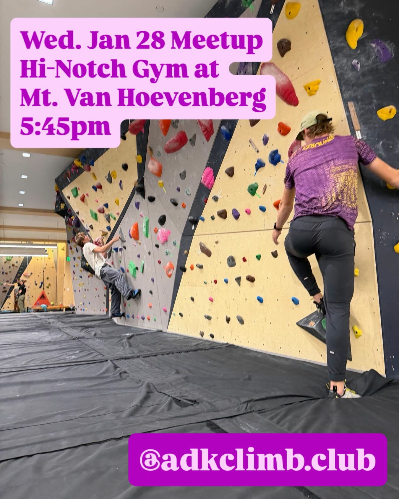 For our Jan 28th meetup, we’re getting strong in the gym! 💪 Meet at 5:45pm at @vanhoevenberg’s Hi-Notch Climbing Gym for bouldering, top rope, and lead climbing. Don’t forget $7 for your after-hours pass. Thanks to @keepontrekkingg for hosting this week’s meetup!