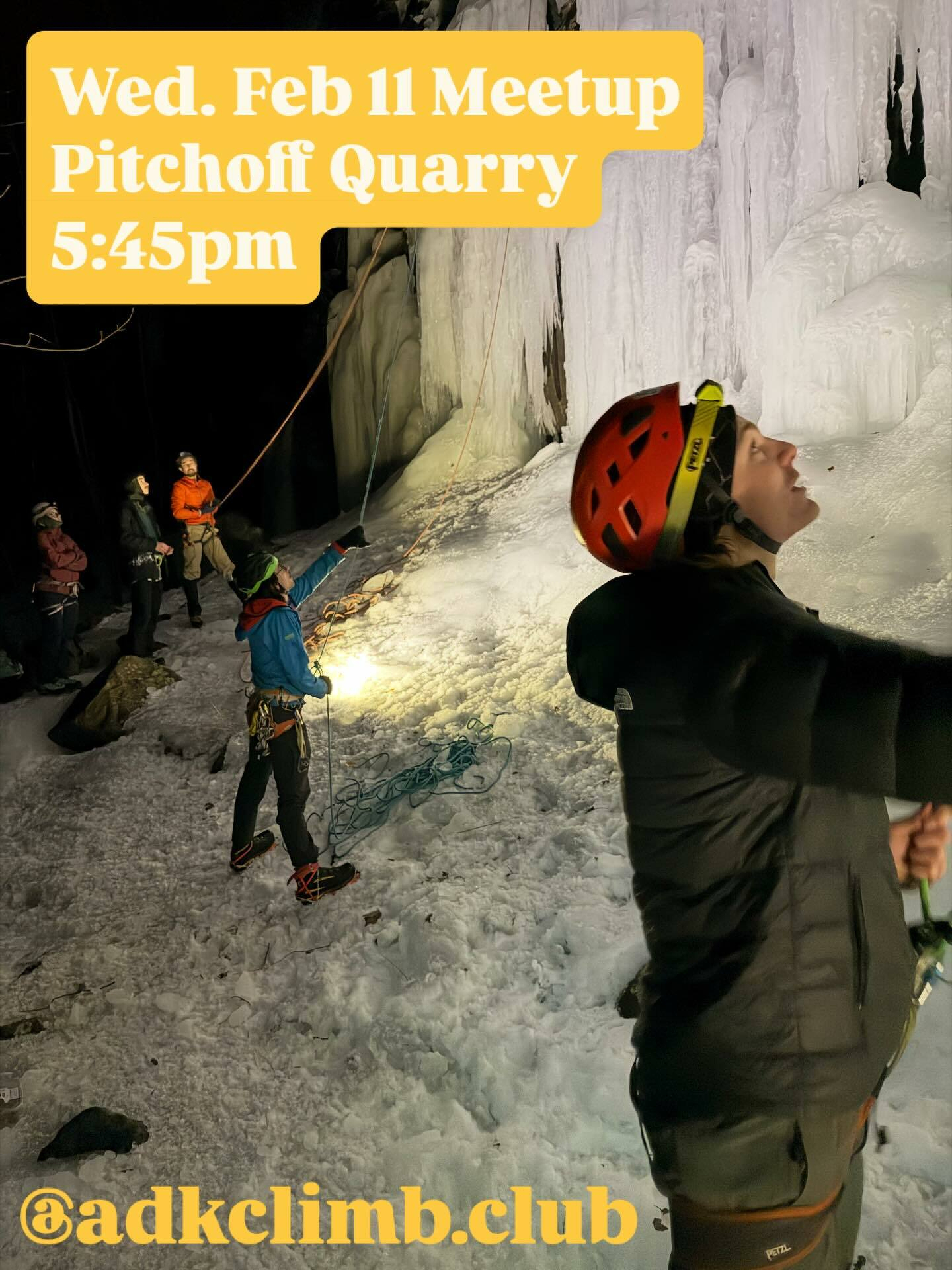 Our meetup for Wednesday, Feb. 11 will be at the Pitchoff Quarry. Ice has been great lately, so get psyched for steep and long climbs! Meet at the pulloff (link in bio) at 5:45p if you’re not familiar with where to go. If anyone can get there early to start rigging ropes, that would be awesome!